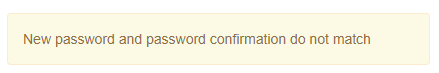 Enter the exact same password again in the 'Confirm New Password' field, then hit save. If they do not match you will be prompted with a notification, inviting you to match the passwords: