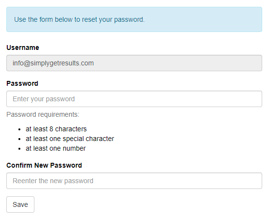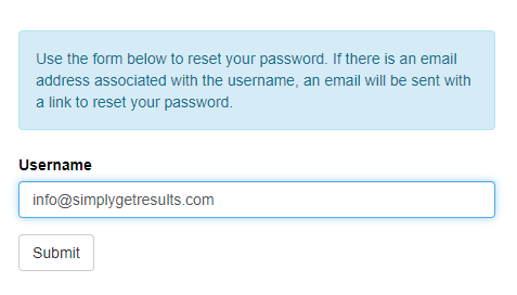 If you need further assistance in resetting a password or accessing your account, please contact helpdesk@simplygetresults.com and one of the team will respond to you quickly.